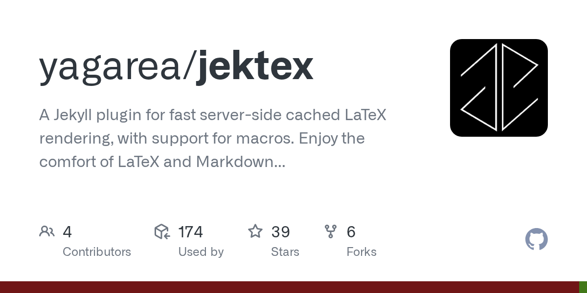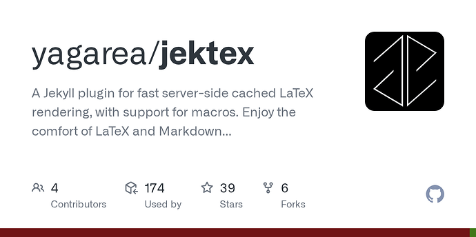 Jektex version 0.0.8 was published (Latex renderer for jekyll)